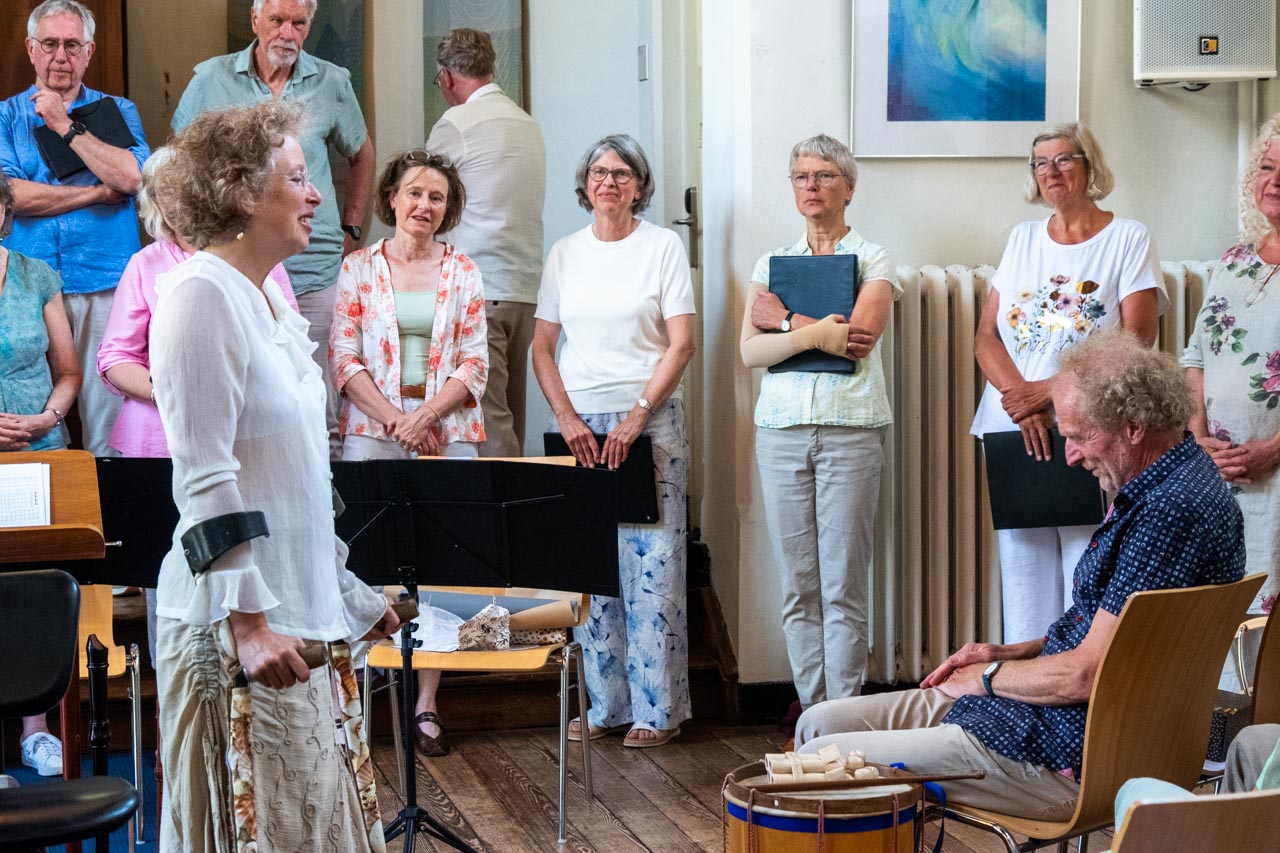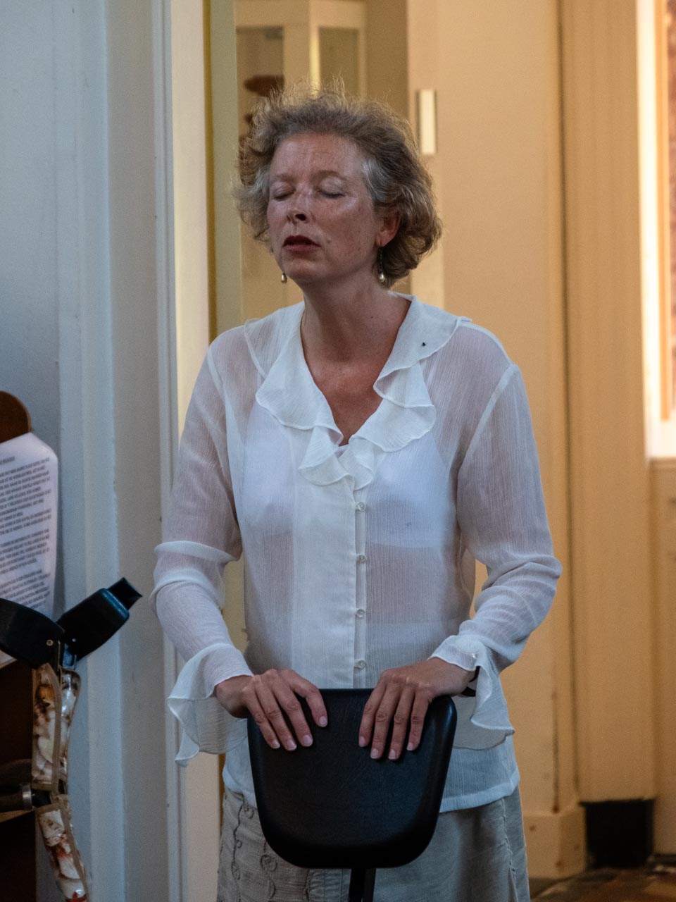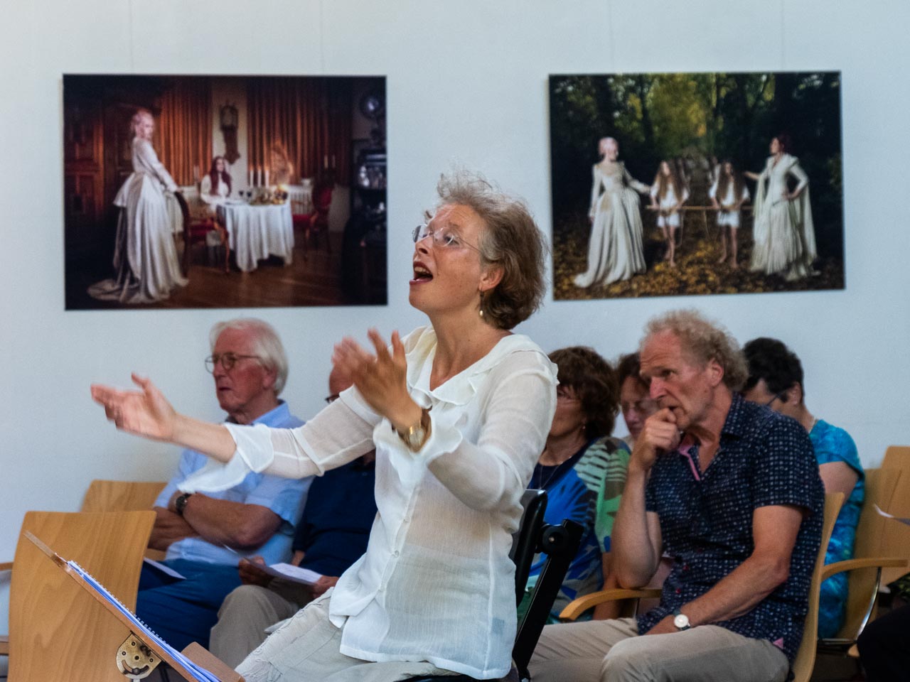 Hierna nam Serena het woord, om Frans te bedanken en ook het koor en de aanwezigen voor de steun de afgelopen tijd. Als extra dankjewel deed ze vervolgens een indrukwekkende klankimprovisatie.